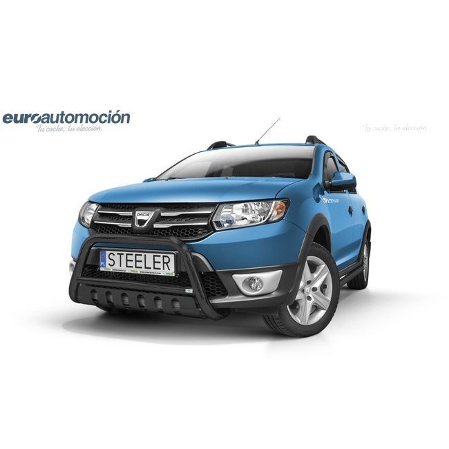Defensa delantera negra CE con traviesa central y protección de bajos con parrilla para DACIA SANDERO STEPWAY 2012-2016