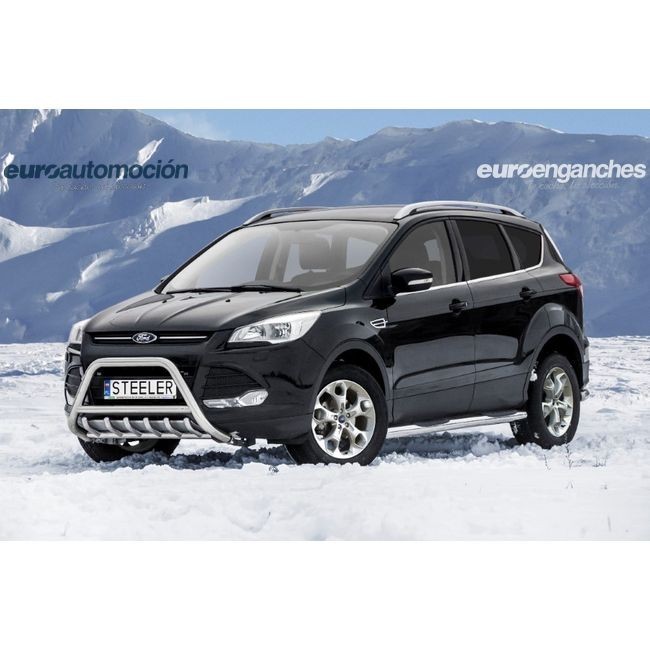 Defensa delantera negra CE con traviesa central y protección de bajos con tubos para FORD KUGA 2013-2017