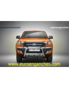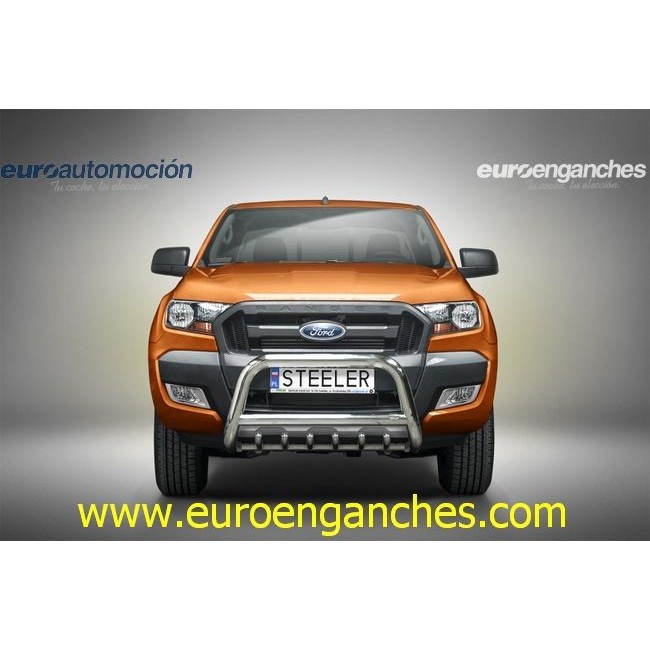 Defensa delantera negra CE con traviesa central y protección de bajos con tubos para FORD RANGER 2016-2019
