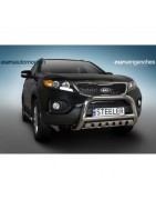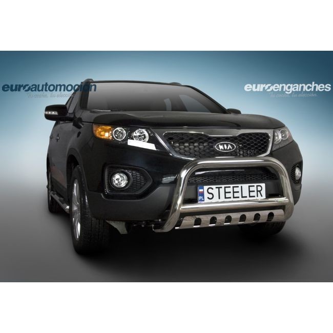 Defensa delantera negra CE con traviesa central y protección de bajos con parrilla para KIA SORENTO 2009-2012
