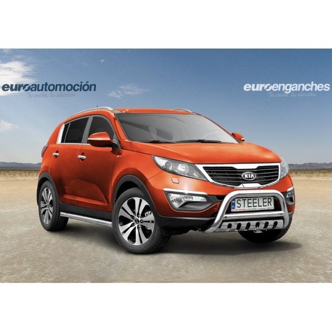 Defensa delantera negra CE con traviesa central y protección de bajos con parrilla para KIA SPORTAGE 2010-2015