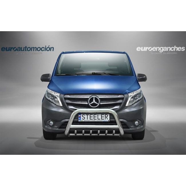 Defensa delantera negra CE con traviesa central y protección de bajos con tubos para MERCEDES VITO 2014-2019