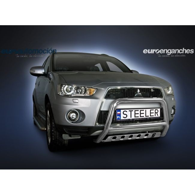 Defensa delantera negra CE con traviesa central y protección de bajos con parrilla para MITSUBISHI OUTLANDER 2010-2012