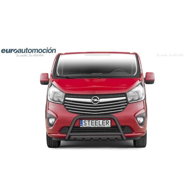 Defensa delantera negra CE con traviesa central y protección de bajos con parrilla para OPEL VIVARO C 2014-2019