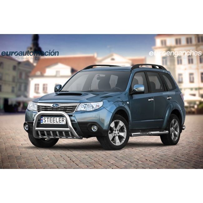 Defensa delantera negra CE con traviesa central y protección de bajos con tubos para SUBARU FORESTER 2008-2012