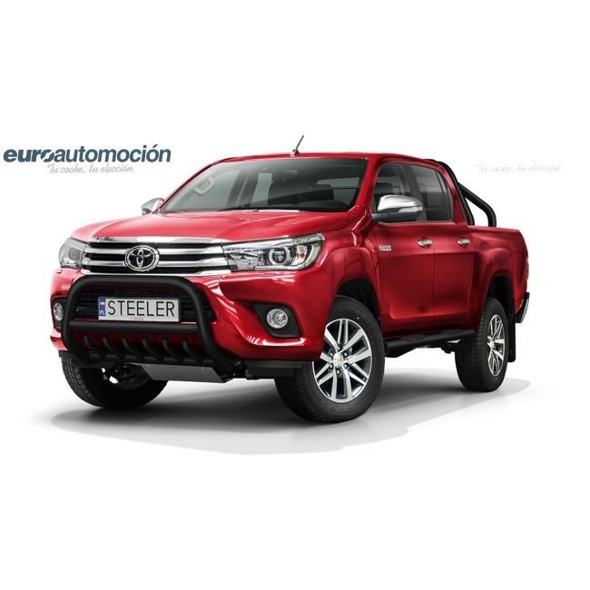 Defensa delantera negra CE con traviesa central y protección de bajos con tubos para TOYOTA HILUX 2015-2018