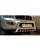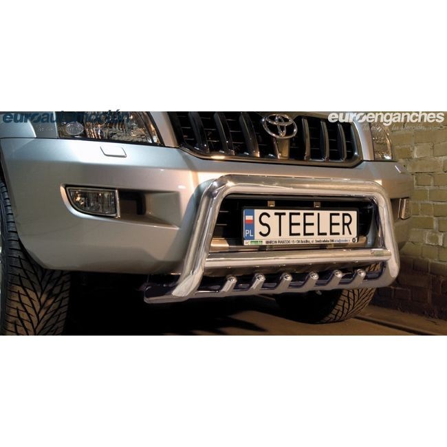 Defensa delantera negra CE con traviesa central y protección de bajos con tubos para TOYOTA LAND CRUISER 120 2003-2009