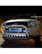 Defensa delantera negra CE con traviesa central y protección de bajos con parrilla para TOYOTA RAV4 2006-2009