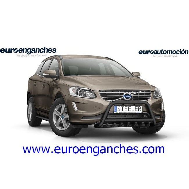Defensa delantera negra CE con traviesa central y protección de bajos con tubos para VOLVO XC60 2013-2017