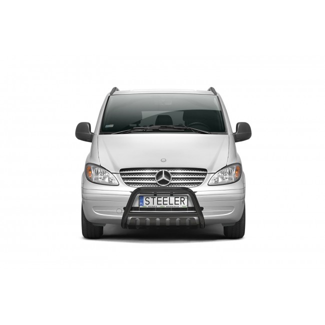 Defensa delantera negra CE con traviesa central y protección de bajos con parrilla para MERCEDES VITO 2003-2010