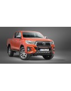 Defensa delantera negra CE con traviesa central y protección de bajos con tubos para TOYOTA HILUX 2018-2021