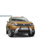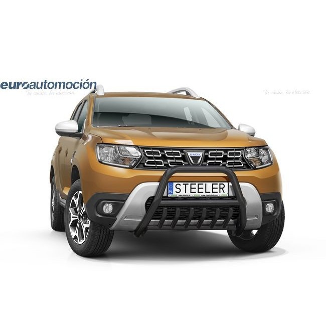 Defensa delantera negra CE con traviesa central y protección de bajos con tubos para DACIA DUSTER 2018-2022