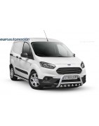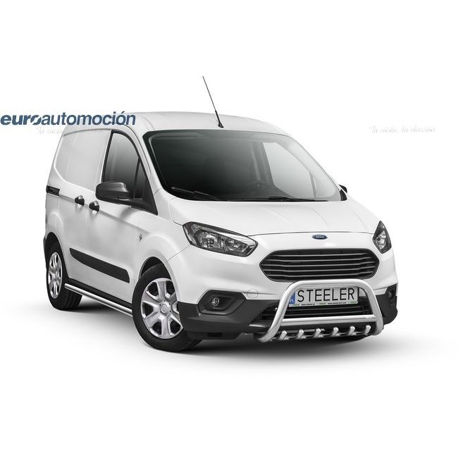 Defensa delantera negra CE con traviesa central y protección de bajos con tubos para FORD TOURNEO COURIER 2018-2021