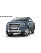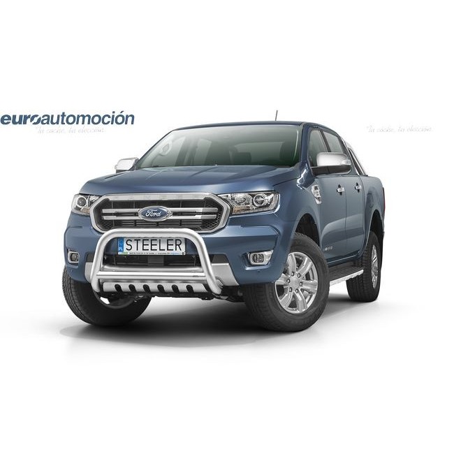 Defensa delantera negra CE con traviesa central y protección de bajos con parrilla para FORD RANGER 2019-2022
