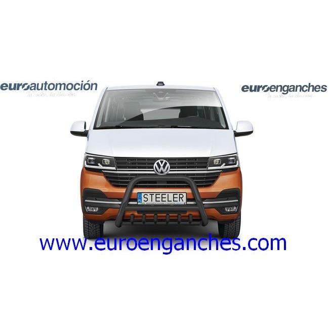 Defensa delantera negra CE con traviesa central y protección de bajos con tubos para VOLKSWAGEN TRANSPORTER T6 FURGÓN 2019-