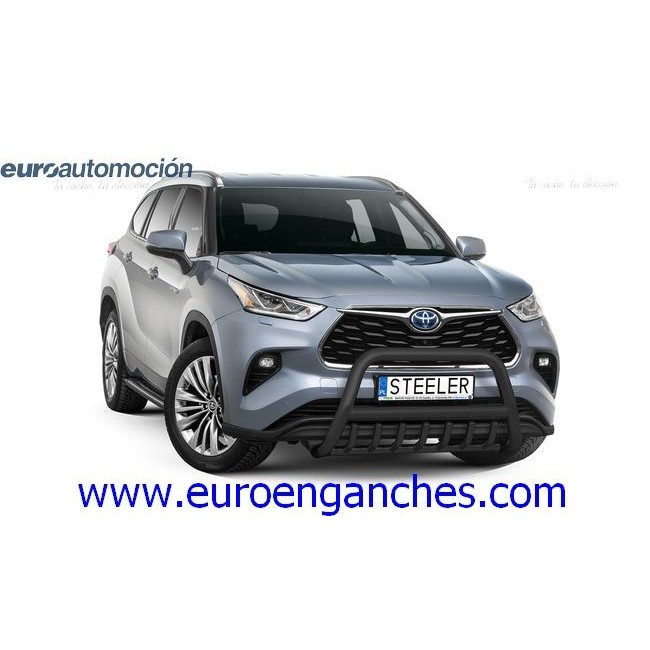 Defensa delantera negra CE con traviesa central y protección de bajos con tubos para TOYOTA HIGHLANDER 2019-