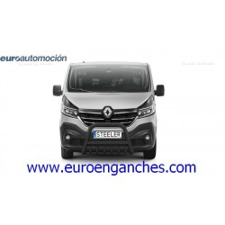 Defensa delantera negra CE con traviesa central y protección de bajos con tubos para RENAULT Trafic Furgón 2019-2021