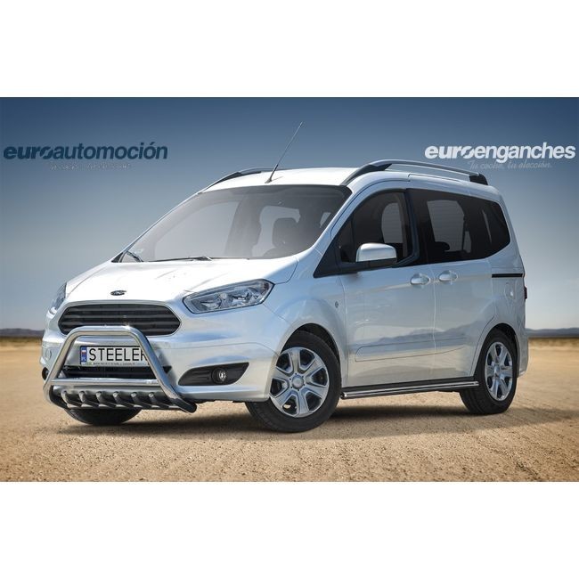 Defensa delantera negra CE con traviesa central y protección de bajos con tubos para FORD TRANSIT COURIER 2014-2018