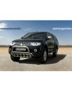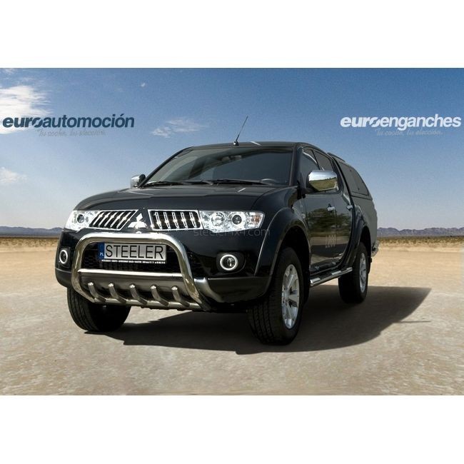 Defensa delantera negra CE con traviesa central y protección de bajos con tubos para MITSUBISHI L200 Cabina club 2006-2010