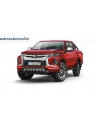 Defensa delantera negra CE con traviesa central y protección de bajos con tubos para MITSUBISHI L200 Cabina club 2019-
