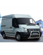 Defensa delantera negra CE con traviesa central y protección de bajos con parrilla para FORD TRANSIT AUTOCARAVANA 2006-2014