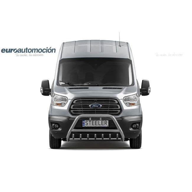 Defensa delantera negra CE con traviesa central y protección de bajos con tubos para FORD TRANSIT AUTOCARAVANA 2014-2019
