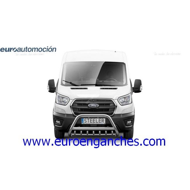 Defensa delantera negra CE con traviesa central y protección de bajos con tubos para FORD TRANSIT AUTOCARAVANA 2019-