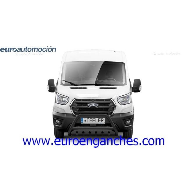 Defensa delantera negra CE con traviesa central y protección de bajos con parrilla para FORD TRANSIT AUTOCARAVANA 2019-