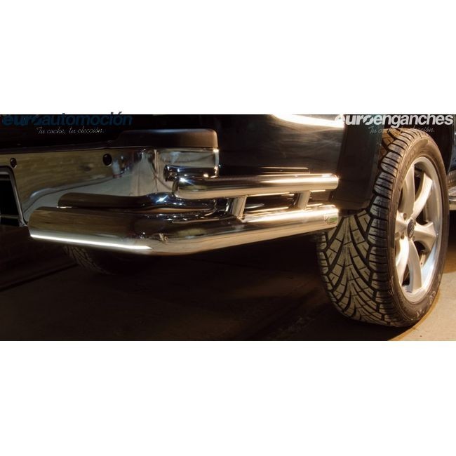 Esquineras negras con detalle de doble tubo de acero inoxidable de 76mm de diámetro. El tipo de acero inoxidable utilizado es el AISI 304 que tiene una muy alta resistencia a la corrosión. Su espesor es de 2mm y ha sido lacada con pintura plástica en negro muy resistente a las condiciones metereológicas. De acuerdo con la actual Directiva, este producto, una vez montado en un taller registrado en Industria, debe ser legalizado en una ITV mediante un proyecto técnico que podemos gestionarle si lo desea. La garantia suministradas en los artículos pintados en negro es de 12 meses. La foto mostrada es en acero pulido por no poseer de ella en negro, pero se sumistra en negro. Si tiene alguna consulta sobre el producto o de su legalización en la ITV, no dude en ponerse en contacto con nosotros. NOTA: Como nuestro objetivo es la plena satisfacción del cliente y al ser éste un producto PREMIUM, siempre suministramos artículos nuevos, en perfecto estado y fabricados bajo pedido, por lo que el tiempo de entrega oscila entre las 3 y 5 semanas.