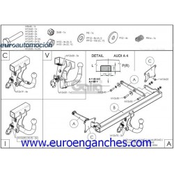 Enganche de remolque fijo galvanizado para Audi A4 Sedán (B9), Híbrido, 2020-