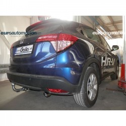 Enganche de remolque extraíble horizontal GALVANIZADO adecuado para el Honda HR-V II (2015-2021): Bola extraíble horizontal con bloqueo manual mediante giro de maneta o descripción similar. Contenido del envío: Enganche de remolque en color plata completo con una muy alta protección contra la corrosión gracias a su tratamiento de GALVANIZADO que incluye el cuerpo, la bola, los elementos de fijación, la tornillería, las instrucciones de montaje, el certificado de homologación europea 94/20/CE o R55 y el informe de conformidad. Cerradura opcional. NOTA: Para conocer el KIT ELÉCTRICO que mejor se adapta al uso que le va a dar a su enganche, clique en "¿QUÉ KIT ELÉCTRICO ELEGIR?", lea con atención las características de los mismos y a continuación selecciónelo para añadirlo a su pedido. El mismo se envía directamente desde fábrica en Europa con un tránsito entre 2 y 5 días. Si tiene alguna duda sobre el producto, póngase en contacto con nosotros y le atenderemos gustosamente.