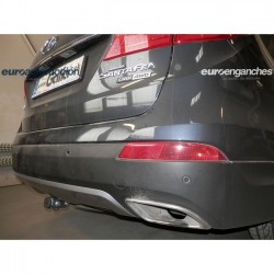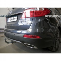 Enganche de remolque extraíble horizontal GALVANIZADO adecuado para el Hyundai Grand Santa Fe DM (2014-2019): Bola extraíble horizontal con bloqueo manual mediante giro de maneta o descripción similar. Contenido del envío: Enganche de remolque en color plata completo con una muy alta protección contra la corrosión gracias a su tratamiento de GALVANIZADO que incluye el cuerpo, la bola, los elementos de fijación, la tornillería, las instrucciones de montaje, el certificado de homologación europea 94/20/CE o R55 y el informe de conformidad. Cerradura opcional. NOTA: Para conocer el KIT ELÉCTRICO que mejor se adapta al uso que le va a dar a su enganche, clique en "¿QUÉ KIT ELÉCTRICO ELEGIR?", lea con atención las características de los mismos y a continuación selecciónelo para añadirlo a su pedido. El mismo se envía directamente desde fábrica en Europa con un tránsito entre 2 y 5 días. Si tiene alguna duda sobre el producto, póngase en contacto con nosotros y le atenderemos gustosamente.
