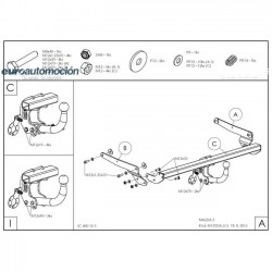 Enganche de remolque extraíble horizontal GALVANIZADO adecuado para el Mazda 3 III, Sedán (2013-2018): Bola extraíble horizontal con bloqueo manual mediante giro de maneta o descripción similar. Contenido del envío: Enganche de remolque en color plata completo con una muy alta protección contra la corrosión gracias a su tratamiento de GALVANIZADO que incluye el cuerpo, la bola, los elementos de fijación, la tornillería, las instrucciones de montaje, el certificado de homologación europea 94/20/CE o R55 y el informe de conformidad. Cerradura opcional. NOTA: Para conocer el KIT ELÉCTRICO que mejor se adapta al uso que le va a dar a su enganche, clique en "¿QUÉ KIT ELÉCTRICO ELEGIR?", lea con atención las características de los mismos y a continuación selecciónelo para añadirlo a su pedido. El mismo se envía directamente desde fábrica en Europa con un tránsito entre 2 y 5 días. Si tiene alguna duda sobre el producto, póngase en contacto con nosotros y le atenderemos gustosamente.