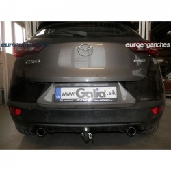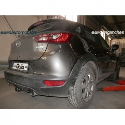 Enganche de remolque extraíble horizontal GALVANIZADO adecuado para el Mazda CX-3 SUV (2015-2022): Bola extraíble horizontal con bloqueo manual mediante giro de maneta o descripción similar. Contenido del envío: Enganche de remolque en color plata completo con una muy alta protección contra la corrosión gracias a su tratamiento de GALVANIZADO que incluye el cuerpo, la bola, los elementos de fijación, la tornillería, las instrucciones de montaje, el certificado de homologación europea 94/20/CE o R55 y el informe de conformidad. Cerradura opcional. NOTA: Para conocer el KIT ELÉCTRICO que mejor se adapta al uso que le va a dar a su enganche, clique en "¿QUÉ KIT ELÉCTRICO ELEGIR?", lea con atención las características de los mismos y a continuación selecciónelo para añadirlo a su pedido. El mismo se envía directamente desde fábrica en Europa con un tránsito entre 2 y 5 días. Si tiene alguna duda sobre el producto, póngase en contacto con nosotros y le atenderemos gustosamente.