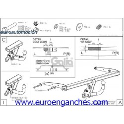 Enganche de remolque extraíble horizontal galvanizado para Seat Leon III fase 1, 3 y 5 Puertas, 2014-