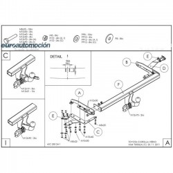 Enganche de remolque extraíble horizontal galvanizado para Toyota Auris I, 3 y 5 Puertas, 2007-2009