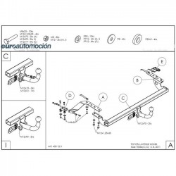 Enganche de remolque extraíble horizontal GALVANIZADO adecuado para el Toyota Auris II, Touring Sports (2013-2019): Bola extraíble horizontal con bloqueo manual mediante giro de maneta o descripción similar. Contenido del envío: Enganche de remolque en color plata completo con una muy alta protección contra la corrosión gracias a su tratamiento de GALVANIZADO que incluye el cuerpo, la bola, los elementos de fijación, la tornillería, las instrucciones de montaje, el certificado de homologación europea 94/20/CE o R55 y el informe de conformidad. Cerradura opcional. NOTA: Para conocer el KIT ELÉCTRICO que mejor se adapta al uso que le va a dar a su enganche, clique en "¿QUÉ KIT ELÉCTRICO ELEGIR?", lea con atención las características de los mismos y a continuación selecciónelo para añadirlo a su pedido. El mismo se envía directamente desde fábrica en Europa con un tránsito entre 2 y 5 días. Si tiene alguna duda sobre el producto, póngase en contacto con nosotros y le atenderemos gustosamente.