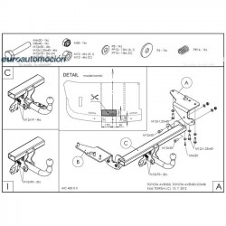 Enganche de remolque extraíble horizontal GALVANIZADO adecuado para el Toyota Corolla Verso, II, (R1) (2004-2009): Bola extraíble horizontal con bloqueo manual mediante giro de maneta o descripción similar. Contenido del envío: Enganche de remolque en color plata completo con una muy alta protección contra la corrosión gracias a su tratamiento de GALVANIZADO que incluye el cuerpo, la bola, los elementos de fijación, la tornillería, las instrucciones de montaje, el certificado de homologación europea 94/20/CE o R55 y el informe de conformidad. Cerradura opcional. NOTA: Para conocer el KIT ELÉCTRICO que mejor se adapta al uso que le va a dar a su enganche, clique en "¿QUÉ KIT ELÉCTRICO ELEGIR?", lea con atención las características de los mismos y a continuación selecciónelo para añadirlo a su pedido. El mismo se envía directamente desde fábrica en Europa con un tránsito entre 2 y 5 días. Si tiene alguna duda sobre el producto, póngase en contacto con nosotros y le atenderemos gustosamente.