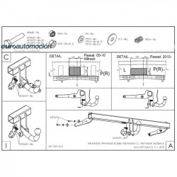 Enganche de remolque extraíble horizontal galvanizado para Volkswagen Passat B6, Variant, 2005-2010