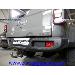 Enganche de remolque extraíble horizontal GALVANIZADO adecuado para el Jeep Gladiator 4x4, (JT) (2019-): Bola extraíble horizontal con bloqueo manual mediante giro de maneta o descripción similar. Contenido del envío: Enganche de remolque en color plata completo con una muy alta protección contra la corrosión gracias a su tratamiento de GALVANIZADO que incluye el cuerpo, la bola, los elementos de fijación, la tornillería, las instrucciones de montaje, el certificado de homologación europea 94/20/CE o R55 y el informe de conformidad. Cerradura opcional. NOTA: Para conocer el KIT ELÉCTRICO que mejor se adapta al uso que le va a dar a su enganche, clique en "¿QUÉ KIT ELÉCTRICO ELEGIR?", lea con atención las características de los mismos y a continuación selecciónelo para añadirlo a su pedido. El mismo se envía directamente desde fábrica en Europa con un tránsito entre 2 y 5 días. Si tiene alguna duda sobre el producto, póngase en contacto con nosotros y le atenderemos gustosamente.