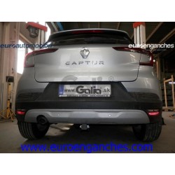 Enganche de remolque extraíble horizontal GALVANIZADO adecuado para el Renault Captur II, Híbrido, con sensores de aparcamiento (2020-): Bola extraíble horizontal con bloqueo manual mediante giro de maneta o descripción similar. Contenido del envío: Enganche de remolque en color plata completo con una muy alta protección contra la corrosión gracias a su tratamiento de GALVANIZADO que incluye el cuerpo, la bola, los elementos de fijación, la tornillería, las instrucciones de montaje, el certificado de homologación europea 94/20/CE o R55 y el informe de conformidad. NOTA: Para conocer el KIT ELÉCTRICO que mejor se adapta al uso que le va a dar a su enganche, clique en "¿QUÉ KIT ELÉCTRICO ELEGIR?", lea con atención las características de los mismos y a continuación selecciónelo para añadirlo a su pedido. El mismo se envía directamente desde fábrica en Europa con un tránsito entre 2 y 5 días. Si tiene alguna duda sobre el producto, póngase en contacto con nosotros y le atenderemos gustosamente.