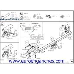 Enganche de remolque extraíble horizontal galvanizado para Citroen C3 IV, 5 Puertas, Híbrido, 2024-