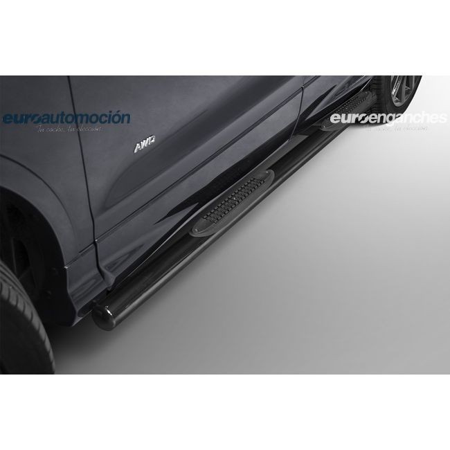Estriberas negras con escalones de plástico superpuestos de acero inoxidable de 70mm de diámetro. El tipo de acero inoxidable utilizado es el AISI 304 que tiene una muy alta resistencia a la corrosión. Su espesor es de 2mm y ha sido lacada con pintura plástica en negro muy resistente a las condiciones metereológicas. Soportan pesos hasta 115 kg. Según normativa vigente, para la legalización de este producto en la ITV tras su instalación por un taller autorizado por el Ministerio de Industria, es obligatorio la presentación de un proyecto técnico que podemos tramitarle por un coste adicional. La garantia suministradas en los artículos pintados en negro es de 12 meses. Si tiene alguna consulta sobre el producto o de su legalización en la ITV, no dude en ponerse en contacto con nosotros. NOTA: Como nuestro objetivo es la plena satisfacción del cliente y al ser éste un producto PREMIUM, siempre suministramos artículos nuevos, en perfecto estado y fabricados bajo pedido, por lo que el tiempo de entrega oscila entre las 3 y 5 semanas.