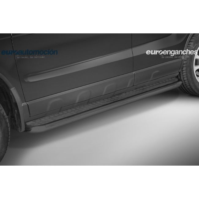 Estriberas negras en plataforma de acero inoxidable de 60mm de diámetro. El tipo de acero inoxidable utilizado es el AISI 304 que tiene una muy alta resistencia a la corrosión. Su espesor es de 2mm y ha sido lacada con pintura plástica en negro muy resistente a las condiciones metereológicas. Soportan pesos hasta 115 kg. Según normativa vigente, para la legalización de este producto en la ITV tras su instalación por un taller autorizado por el Ministerio de Industria, es obligatorio la presentación de un proyecto técnico que podemos tramitarle por un coste adicional. La garantia suministradas en los artículos pintados en negro es de 12 meses. Si tiene alguna consulta sobre el producto o de su legalización en la ITV, no dude en ponerse en contacto con nosotros. NOTA: Como nuestro objetivo es la plena satisfacción del cliente y al ser éste un producto PREMIUM, siempre suministramos artículos nuevos, en perfecto estado y fabricados bajo pedido, por lo que el tiempo de entrega oscila entre las 3 y 5 semanas.