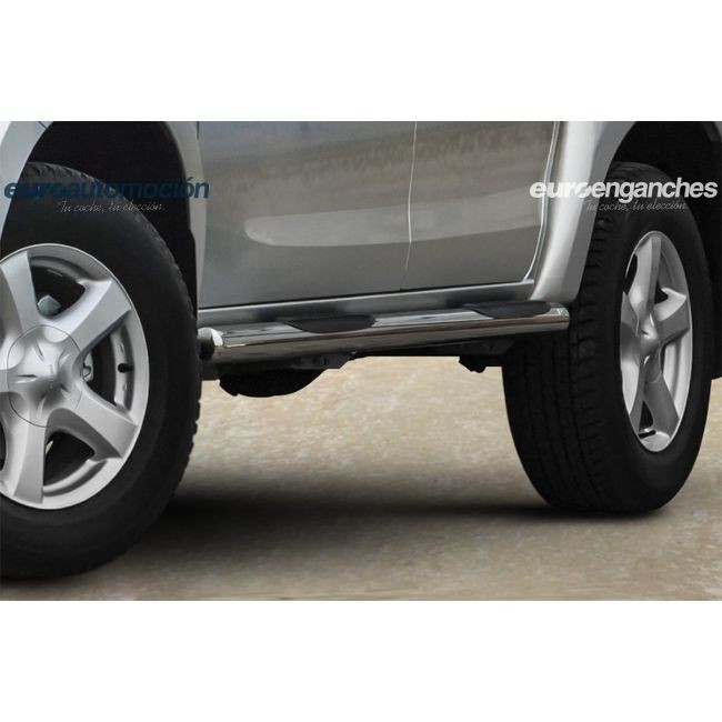 Estriberas negras con escalones de plástico superpuestos de acero inoxidable de 70mm de diámetro. El tipo de acero inoxidable utilizado es el AISI 304 que tiene una muy alta resistencia a la corrosión. Su espesor es de 2mm y ha sido lacada con pintura plástica en negro muy resistente a las condiciones metereológicas. Soportan pesos hasta 115 kg. Según normativa vigente, para la legalización de este producto en la ITV tras su instalación por un taller autorizado por el Ministerio de Industria, es obligatorio la presentación de un proyecto técnico que podemos tramitarle por un coste adicional. La garantia suministradas en los artículos pintados en negro es de 12 meses. La foto mostrada es en acero pulido por no poseer de ella en negro, pero se sumistra en negro. Si tiene alguna consulta sobre el producto o de su legalización en la ITV, no dude en ponerse en contacto con nosotros. NOTA: Como nuestro objetivo es la plena satisfacción del cliente y al ser éste un producto PREMIUM, siempre suministramos artículos nuevos, en perfecto estado y fabricados bajo pedido, por lo que el tiempo de entrega oscila entre las 3 y 5 semanas.