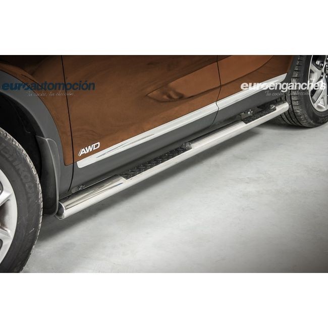 Estriberas negras con escalones de chapa incrustados de acero inoxidable de 76mm de diámetro. El tipo de acero inoxidable utilizado es el AISI 304 que tiene una muy alta resistencia a la corrosión. Su espesor es de 2mm y ha sido lacada con pintura plástica en negro muy resistente a las condiciones metereológicas. Soportan pesos hasta 115 kg. Según normativa vigente, para la legalización de este producto en la ITV tras su instalación por un taller autorizado por el Ministerio de Industria, es obligatorio la presentación de un proyecto técnico que podemos tramitarle por un coste adicional. La garantia suministradas en los artículos pintados en negro es de 12 meses. La foto mostrada es en acero pulido por no poseer de ella en negro, pero se sumistra en negro. Si tiene alguna consulta sobre el producto o de su legalización en la ITV, no dude en ponerse en contacto con nosotros. NOTA: Como nuestro objetivo es la plena satisfacción del cliente y al ser éste un producto PREMIUM, siempre suministramos artículos nuevos, en perfecto estado y fabricados bajo pedido, por lo que el tiempo de entrega oscila entre las 3 y 5 semanas.