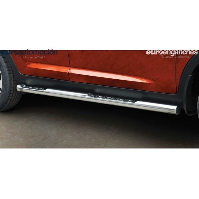 Estriberas negras con escalones de chapa incrustados de acero inoxidable de 76mm de diámetro. El tipo de acero inoxidable utilizado es el AISI 304 que tiene una muy alta resistencia a la corrosión. Su espesor es de 2mm y ha sido lacada con pintura plástica en negro muy resistente a las condiciones metereológicas. Soportan pesos hasta 115 kg. Según normativa vigente, para la legalización de este producto en la ITV tras su instalación por un taller autorizado por el Ministerio de Industria, es obligatorio la presentación de un proyecto técnico que podemos tramitarle por un coste adicional. La garantia suministradas en los artículos pintados en negro es de 12 meses. La foto mostrada es en acero pulido por no poseer de ella en negro, pero se sumistra en negro. Si tiene alguna consulta sobre el producto o de su legalización en la ITV, no dude en ponerse en contacto con nosotros. NOTA: Como nuestro objetivo es la plena satisfacción del cliente y al ser éste un producto PREMIUM, siempre suministramos artículos nuevos, en perfecto estado y fabricados bajo pedido, por lo que el tiempo de entrega oscila entre las 3 y 5 semanas.