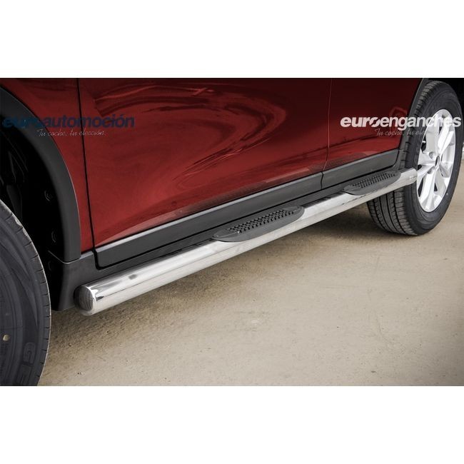 Estriberas con escalones de plástico superpuestos de acero inoxidable pulido a mano de alta calidad de 70mm de diámetro. El tipo de acero inoxidable utilizado es el AISI 304 que tiene una muy alta resistencia a la corrosión. El espesor es de 2mm y ha sido pulido a manos. Soportan pesos hasta 115 kg. Según normativa vigente, para la legalización de este producto en la ITV tras su instalación por un taller autorizado por el Ministerio de Industria, es obligatorio la presentación de un proyecto técnico que podemos tramitarle por un coste adicional. La garantia es de 24 meses. Si tiene alguna consulta sobre el producto o de su legalización en la ITV, no dude en ponerse en contacto con nosotros. NOTA: Como nuestro objetivo es la plena satisfacción del cliente y al ser éste un producto PREMIUM, siempre suministramos artículos nuevos, en perfecto estado y fabricados bajo pedido, por lo que el tiempo de entrega oscila entre las 3 y 5 semanas.