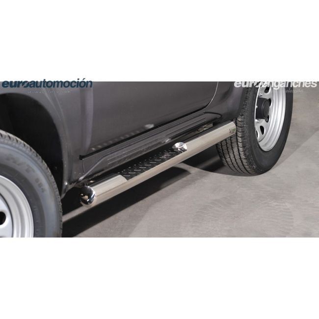 Estriberas negras con escalones de chapa incrustados de acero inoxidable de 76mm de diámetro. El tipo de acero inoxidable utilizado es el AISI 304 que tiene una muy alta resistencia a la corrosión. Su espesor es de 2mm y ha sido lacada con pintura plástica en negro muy resistente a las condiciones metereológicas. Soportan pesos hasta 115 kg. Según normativa vigente, para la legalización de este producto en la ITV tras su instalación por un taller autorizado por el Ministerio de Industria, es obligatorio la presentación de un proyecto técnico que podemos tramitarle por un coste adicional. La garantia suministradas en los artículos pintados en negro es de 12 meses. La foto mostrada es en acero pulido por no poseer de ella en negro, pero se sumistra en negro. Si tiene alguna consulta sobre el producto o de su legalización en la ITV, no dude en ponerse en contacto con nosotros. NOTA: Como nuestro objetivo es la plena satisfacción del cliente y al ser éste un producto PREMIUM, siempre suministramos artículos nuevos, en perfecto estado y fabricados bajo pedido, por lo que el tiempo de entrega oscila entre las 3 y 5 semanas.
