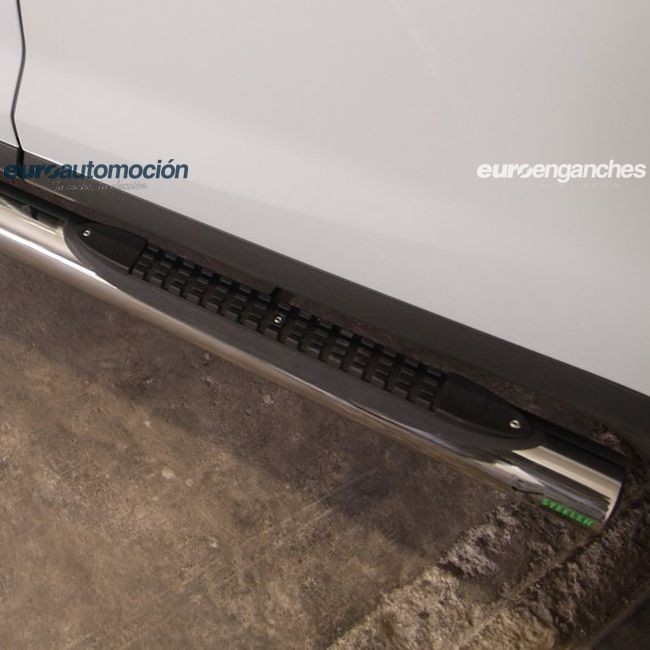 Estriberas con escalones de plástico superpuestos de acero inoxidable pulido a mano de alta calidad de 70mm de diámetro. El tipo de acero inoxidable utilizado es el AISI 304 que tiene una muy alta resistencia a la corrosión. El espesor es de 2mm y ha sido pulido a manos. Soportan pesos hasta 115 kg. Según normativa vigente, para la legalización de este producto en la ITV tras su instalación por un taller autorizado por el Ministerio de Industria, es obligatorio la presentación de un proyecto técnico que podemos tramitarle por un coste adicional. La garantia es de 24 meses. Si tiene alguna consulta sobre el producto o de su legalización en la ITV, no dude en ponerse en contacto con nosotros. NOTA: Como nuestro objetivo es la plena satisfacción del cliente y al ser éste un producto PREMIUM, siempre suministramos artículos nuevos, en perfecto estado y fabricados bajo pedido, por lo que el tiempo de entrega oscila entre las 3 y 5 semanas.
